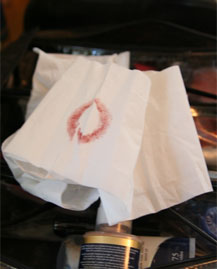 13. Möt pennan med läppstiftet inifrån. Där du kan välja en bra färg som går ihop med kanske rougen. Måla ett lager och pussa av på en pappersservett.